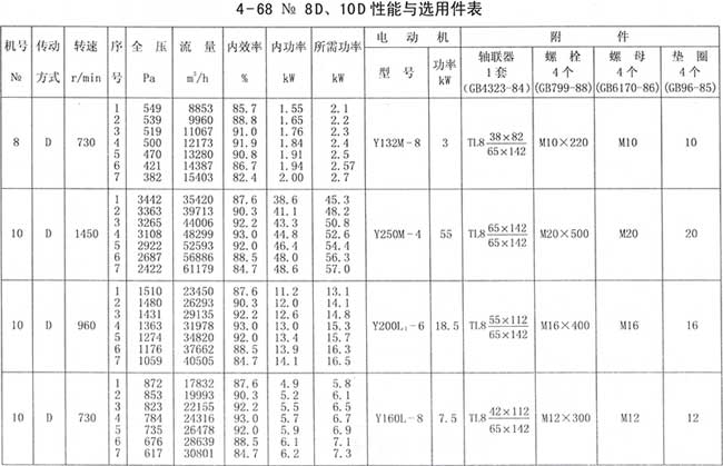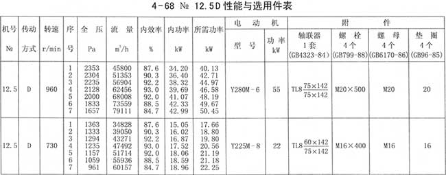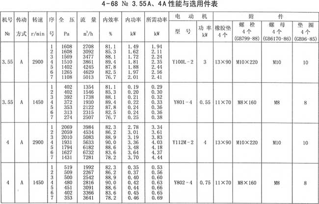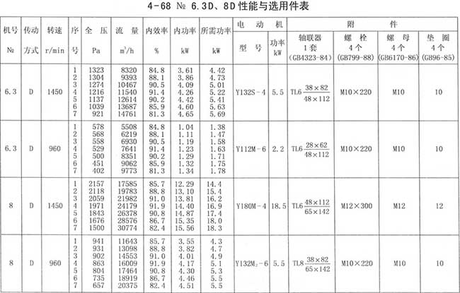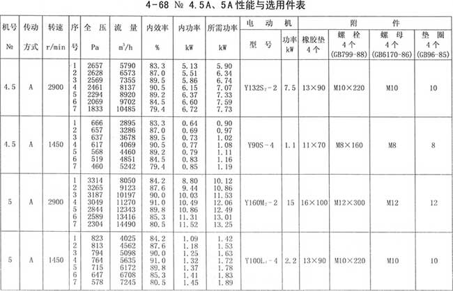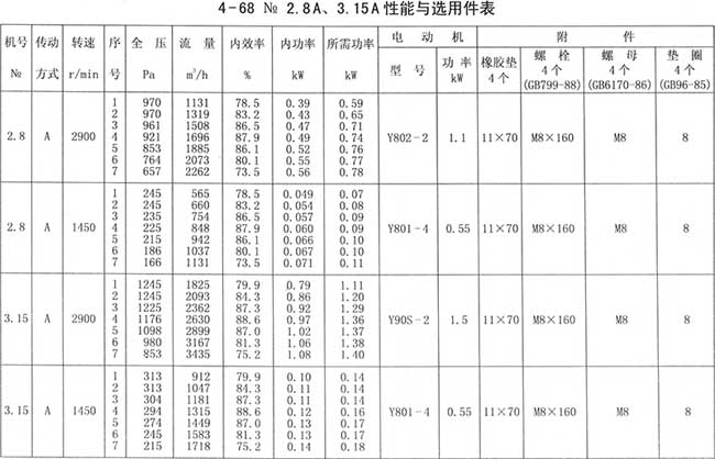 4、周口4-68離心風(fēng)機(jī)性能與選用件表